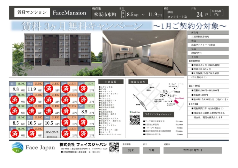 各自で火災保険加入必須(当社指定あり)